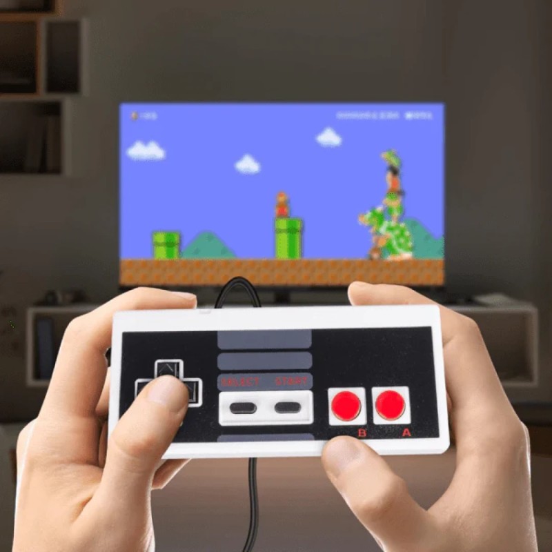 Компактен дизајн - Мини нинтендото е елегантно компактен, обезбедувајќи едноставно и преносливо решение за уживање во твоите омилени игри каде било во домот. Започни ја играта брзо и лесно без непотребни кабли.