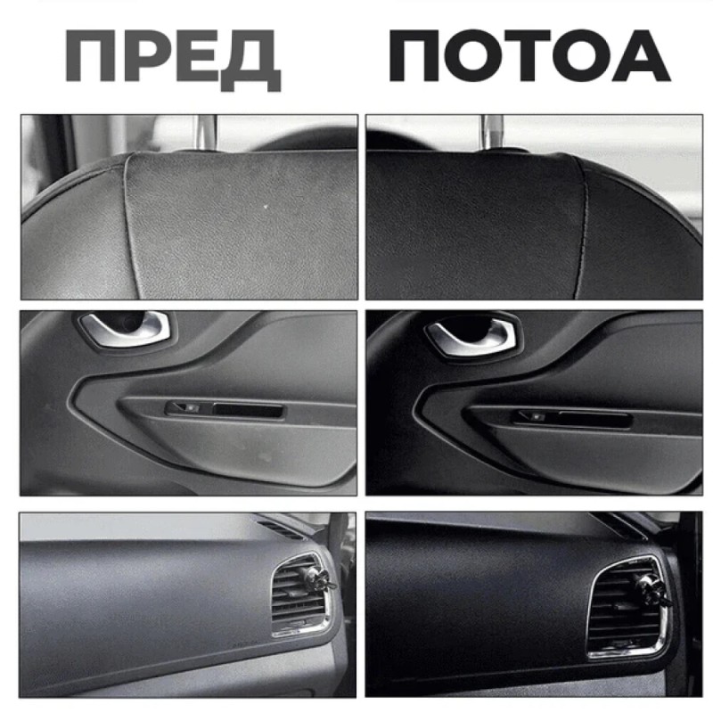 Овој производ е идеален за обновување на избледени или оштетени пластични делови од внатрешноста на автомобилот, како што се контролни табли, конзоли, врати и панели.