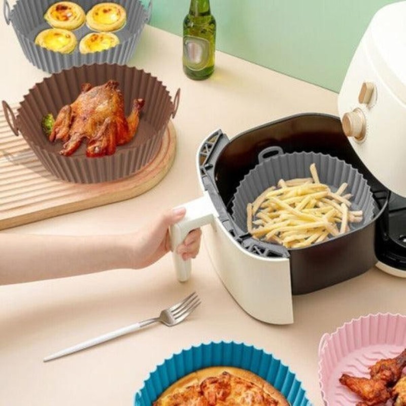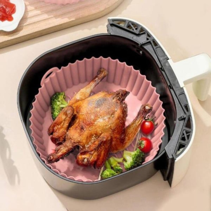✅ Безбедно и здраво готвење - Силиконската подлога е изработена од висококвалитетен, нетоксичен материјал кој е безбеден за употреба во фризерот за воздух. Овозможува подготовка на крцкави и вкусни оброци без потреба од додавање маснотии и масло, а со тоа го намалува внесот на калории и масти, правејќи го твојот оброк поздрав и побалансиран.